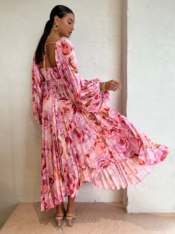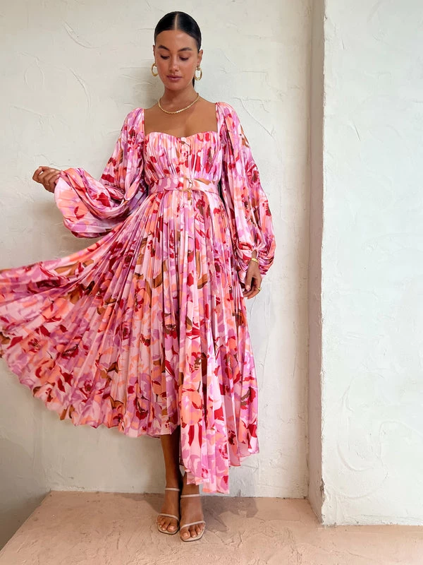 Bask in sunshine styling and floral motifs with the Lothair Dress in Peony Harvest by Acler. Crafted from a signature pleated satin fabrication, this midi dress features a sweetheart neckline, exaggerated sleeves and asymmetrical hem. Finished with a removable waist belt detailed with luxe gold hardware to cinch the waistline, this midi dress is guaranteed to form and flatter at any Coco occasion. DETAILS & CARE Fabric: 100% Polyester- Midi dress- Sweetheart neckline- Full length sleeves- Asymmetrical hem- Waist belt with luxe gold hardware- Centre back ties- Elasticated back bodiceOur Coco girl Eden wears a Size 8 AU / Small.Eden's Height is 175cm COCO STYLING TIP Complete the look with the Alias Mae Zi Heel in Cream, Arms of Eve Rae Chain in Gold, Reliquia Trending Upwards Hoops in Gold, Amber Sceats Hunter Bracelet in Gold, Porter Chunky Belcher Bracelet in Gold, Porter Triple Heirloom Ring in Gold, Porter Pond Ring in Gold and the Porter Wave Ring Set in Gold.
