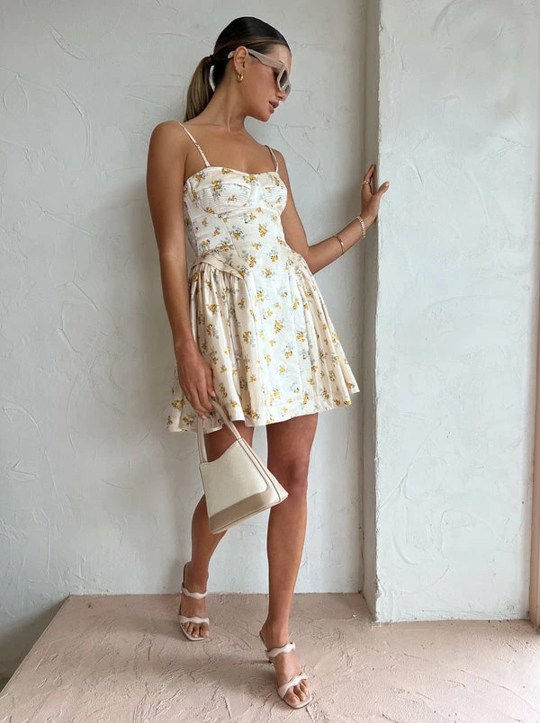 Embrace old world charm with the Bea Corset Mini Dress in Ivory by ALÉMAIS.Crafted from a soft Linen Satin blend fabrication, this mini dress celebrates intricate detail with quilted bra cups and a fitted bodice that cascades through the skirt with soft gathering. Coveted for the whimsical design, Coco girls love this mini dress for garden parties, sunshine drinks and weekend getaways. DETAILS & CARE Fabric: 35% Silk 65% Linen Satin- Fitted bodice mini dress – Quilted detailing on bra cup- Removable straps- Shirring at the back – Invisible zip with hook and eye closure- Fully lined- Fitted through the bodice and flares through the skirtCare Instructions: Dry Clean Only.Our Coco girl Eden wears a size AU 8 / small.Eden's height is 175 cm. COCO STYLING TIP Complete this special occasion look with the CAMILLA AND MARC Vigo Heels in Ivory, Porter Triple Heirloom Ring in Gold, Porter Wave Croissant Ring in Gold, Porter Heirloom Bangle 6mm in Gold, Porter Baby Link Bracelet in Gold, Brie Leon Mini Pearl Choker, Porter Hailey Twist Necklace in Gold, Reliquia Thalia Ring in Pearl/Gold and the Porter Spiral Hoops in Gold.