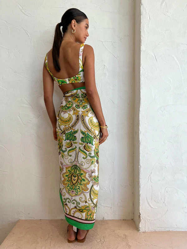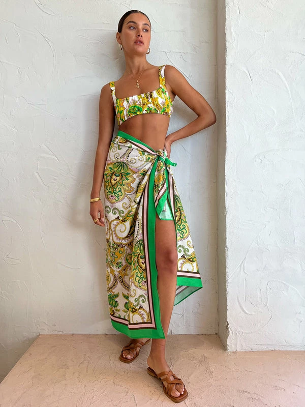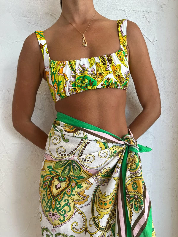 Enrich your swim collection with the beautiful Octavia Balconette Top in Ivory by ALÈMAIS. Thoughtfully crafted from a Recycled Polyamide and Elastane blend, this soft bikini top is detailed with a ruched front panel and fastens with a clasp closure at the back. Fully lined, the Octavia Balconette is a timeless investment for Summer getaways and beach to bar days styled as a bikini or crop. DETAILS & CARE Fabric: 78% Recycled Polyamide 12% Elastane – Soft bikini top – Ruched panel front detail – Back clasp – Fully lined in white lining – Fit is true to size Our Coco girl Eden wears a size AU 8 / small. Eden’s height is 175cm. COCO STYLING TIP Complete this extravagant resort ensemble with the Alemais Octavia Sarong in Ivory, the Alohas Pad Sandal in Tan, the Marion Sun Hat in Emerald, the Porter Chunky Belcher Necklace 2.0 in Gold, and Arms of Eve Olivia Gold Cuff in Gold.