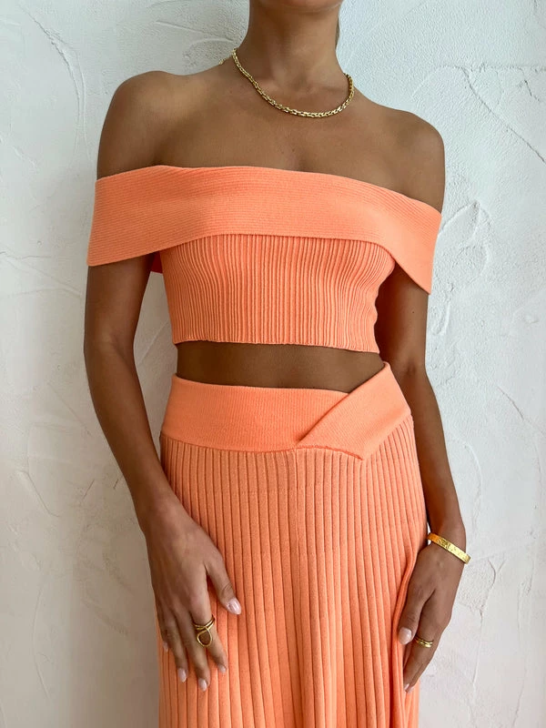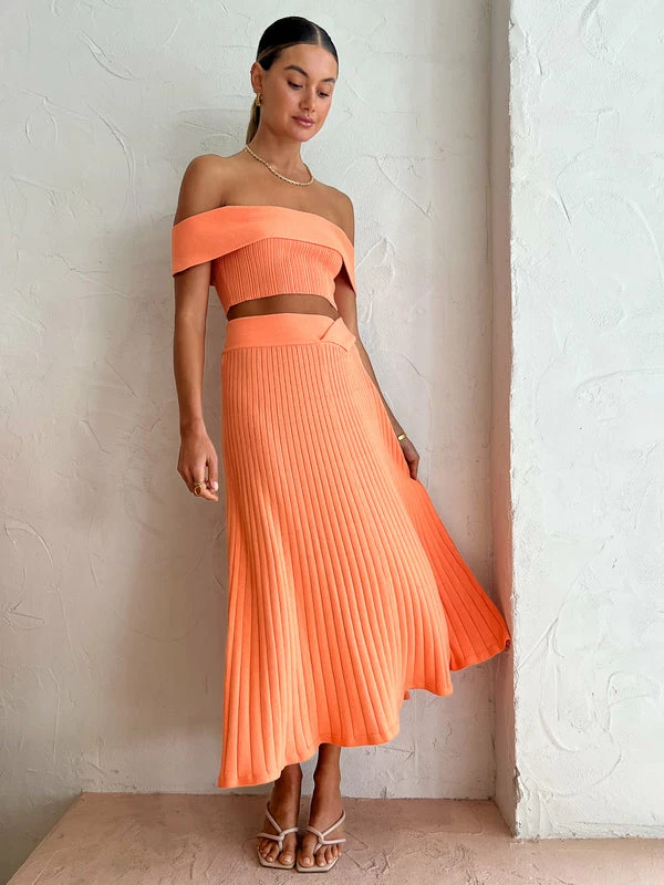 Invite vibrant colour into your style repertoire with the Celeste Skirt in Coral from Anna Quan. Crafted from a Cotton rib knit, this A-line style midi skirt features an asymmetrical wrap waistband and a gently flared hemline. Coveted for the flattering silhouette, this versatile midi skirt can be styled to suit any occasion in your social calendar. DETAILS & CARE Fabric: 100% Cotton – Flared hem knitted skirt – Midi length – Asymmetrical wrap waist band – High waisted – True to size – Gently flared hemline Care Instructions: Hand washable. dry flat, do not hang Our Coco girl Eden wears a size AU 8 / small. Eden’s height is 175cm. COCO STYLING TIP For cocktails and birthday celebrations, complete the set with the matching Tessa Top in Coral and accessorise with the Alias Mae Baz Heel in Cream, the Porter Chunky Belcher Bracelet in Gold, Arms of Eve Rain Chain Necklace in Gold and the Porter Pond Ring in Gold.