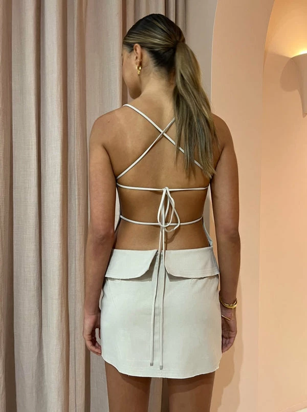 With the nostalgic 90's era in mind, Bec + Bridge have transformed the classic mini with the Heidi Mini Dress in Bone.This mini dress features a flattering high square neckline with thin rouleau straps that balance the open back and is finished with a faux mini skirt overlay. With the statement design and raw hem finish, Coco Girls are coveting this style for birthday celebrations through to cocktail hour. DETAILS & CARE Fabric: Main: 61% polyester, 19% wool, 18% viscose, 2% elastane – Mini Dress- High square neckline- Faux mini skirt overlay- Boning at side seams of bodice- Thin rouleau straps that feed through loops and finish at a cross-back- Mini dress is finished with twin needle topstitched raw hemline. – Form-fitting silhouette- Accessed through invisible zipper and hook and eye closure at the back- Not bra friendly- Fabric offers some stretch to the fitCare Instructions: Cold hand wash only. Our Coco girl Eden wears a size AU 8 / small.Eden’s height is 175 cm. COCO STYLING TIP Style this look with the Alias Mae Baz Heels in Black, Porter Pond Earrings in Gold, Porter Pond Ring in Gold, Porter Pond Bangle in Gold, Porter Wave Ring Set in Gold, Porter Chunky Belcher Bracelet in Gold.