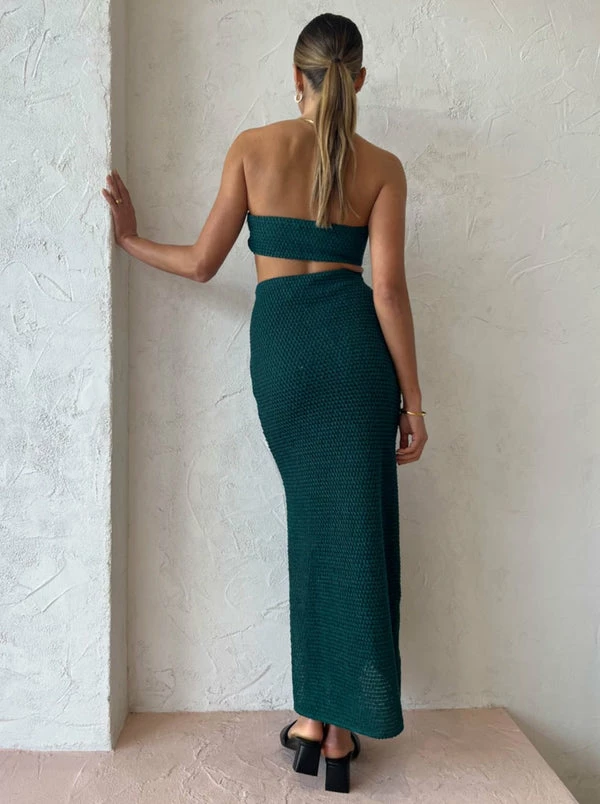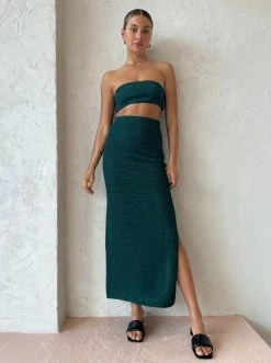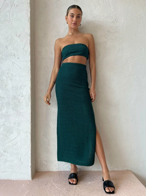 Create a captivating ensemble with CAMILLA AND MARC's Adrien Skirt in Marble Green. Crafted from a textured weave fabrication, this strikingly feminine green maxi is designed for a high-waisted slim fit with a side split. Offering a fresh take on knitwear and transparency, Coco girls adore this skirt for island getaways and endless sunset soirees. DETAILS & CARE Fabric: Main 100% Polyester Lining 100% Polyester – High waisted – Column skirt – Textured – Slim fit – Straight skirt silhouette – High side split for ease of wear – Invisible zipper on side seam – Half lined style in a stretch mesh lining COCO STYLING TIP Complete with the matching CAMILLA AND MARC Adrien Bandeau in Marble Green, Alias Mae Ari Heel in Black, Porter Heirloom Bangle in Gold and the Reliquia Sevilla Earrings in Gold.