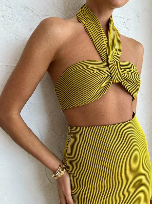 CAMILLA AND MARC's Izaro skirt in Yellow/Brown brings an understated glamour, ease and softness to our Coco closets. Crafted from a unique fabric striped with gold and brown, this maxi skirt features a straight a-line silhouette, a clean elastic waistband and a back hem split for ease of wear.Coveted by Coco for its endless styling versatility, this maxi skirt will be your go to for resort-wear to dinner date styling through the seasons. DETAILS & CARE Fabric: 100% Polyester- Straight silhouette full length skirt- Clean finish waistline bagged out into lining with internal elastic for support- Back hem split for ease of wear- Half lined style- Blind hem finishCare Instructions: Gentle cold hand wash separatelyOur Coco girl Eden wears a size AU 8 / small.Eden's height is 175 cm. COCO STYLING TIP For special occasion styling complete the look with the CAMILLA AND MARC Izaro Bralette in Yellow/Brown, Alias Mae Baz Heels in Black, Porter Paris Huggies, Porter Wave Ring Set in Gold, Porter Heirloom Bangle 6mm in Gold, Porter Pond Bangle in Gold, Porter Frill Cuff in Gold and the Porter Pond Ring in Gold.