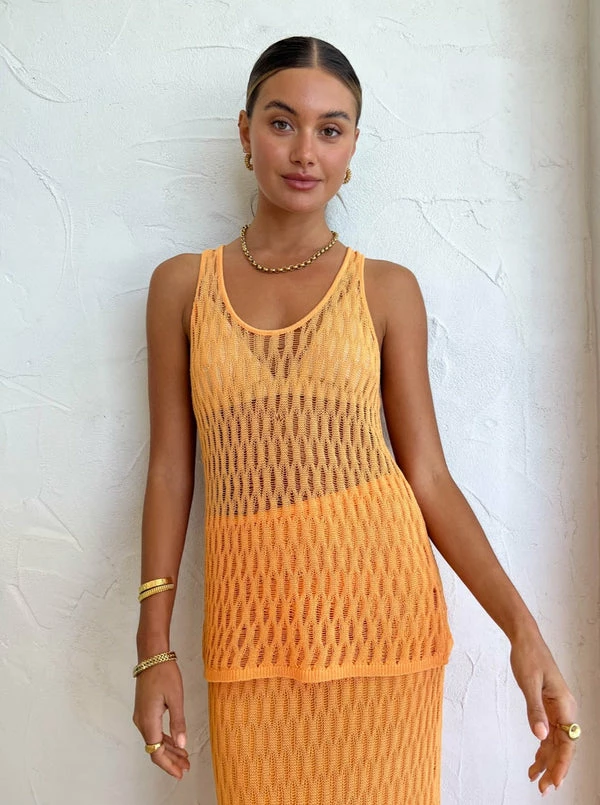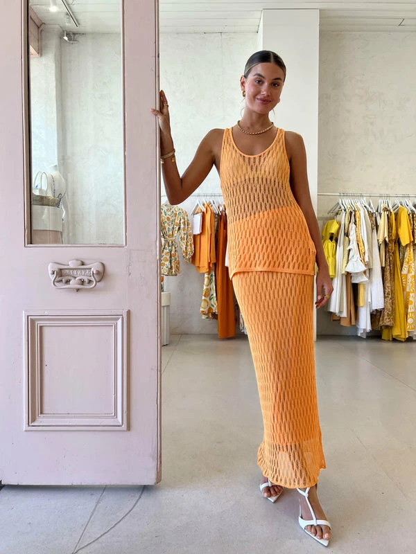 Twirl through the season in a rich tapestry of colour and texture with CAMILLA AND MARC'S Nova Skirt in Apricot. Crafted in a delicate knit from an intricate cotton-based thread, this floor skimming skirt features an elasticated waistband and column silhouette for maximum impact. Adored for the sun-seeking bright hue and intricate knit technique, style this skirt with the Nova Knit Tank for a tropical co-ord look or over your bikini for the perfect beach to bar ensemble. DETAILS & CARE Fabric: Main: 70% Cotton and 30% Nylon Lining: 100% Viscose- Maxi length column silhouette- Elasticated waistband – Designed for a close fit – Fully linedCare Instructions: Gentle cold hand wash separately using a mild detergent.Our Coco girl Eden wears a size AU 8 / small.Eden’s height is 175 cm. COCO STYLING TIP Complete the look with the Camilla and Marc Vigo Heel in Ivory, Porter Spiral Hoops in Gold, Arms of Eve Helios Cuff Bracelet in Gold, Porter Chunky Belcher Necklace 2.0 in Gold, Porter Wave Ring Set in Gold, Porter Pond Bangle in Gold, Porter Chunky Belcher Necklace 2.0 in Gold, and the Porter Pond Ring in Gold