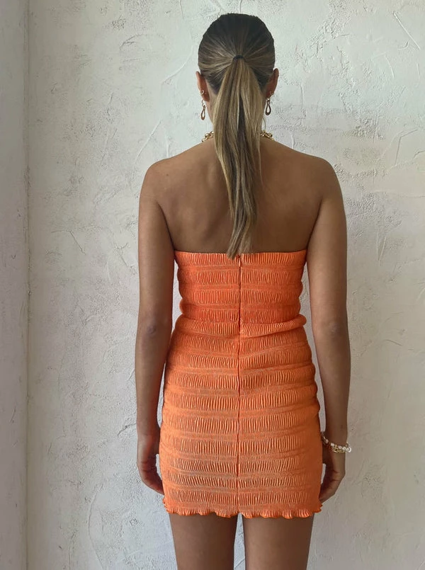 Energise your celebrations with the Aurore Mini in Tangelo from L'IDÉE WOMAN. Crafted from a signature smocking pleat fabrication with a texture, this strapless mini dress sits fitted at the bodice and embraces the femme silhouette from décolletage to hemline. We adore this magical mini and it's bright tangelo hue to brighten birthday celebrations, date nights and sunset soirees. DETAILS & CARE Fabric: 100% High Grade Polyester – Mini dress – Strapless – Fitted bodice – Invisible zip closure along the back – Figure hugging Our Coco girl Eden wears a size 8 AU / Small. Eden's height is 175cm. COCO STYLING TIP Complete with the Alias Mae Camelia Heels in Bone, Amber Sceats Lars Bracelet in Gold and Charli Ring in Gold, the Reliquia Maxima Necklace in Gold and Telde Earrings in Gold.