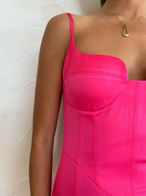 Manning Cartell welcomes us to the hero of summer party dressing with the Electric Feels Mini Dress in Hyper Pink. Crafted from a shiny stretch satin fabrication, this mini dress features bust cup detailing , spaghetti straps and a flattering fitted silhouette. Adding a playful twist with the corset like mid section, make a statement at your next cocktail occasion or festive calendar celebration with this mini dress. DETAILS & CARE Fabric: 82% Viscose, 15% Rayon, 3% Elastane – Mini length – Bust cup detailing – Spaghetti straps – Corset like bodice – Invisible zip for ease of closure Care Instructions: Dry clean recommended Our Coco girl Eden wears a size AU 8 / small. Eden’s height is 175cm. COCO STYLING TIP Add a touch of glamour with the Alias Mae Zi Heels in Cream, the Porter Pond Bangle and Pond Ring in Gold and Reliquia Telde Earrings and matching Telde Necklace in Gold for every special Coco moment.