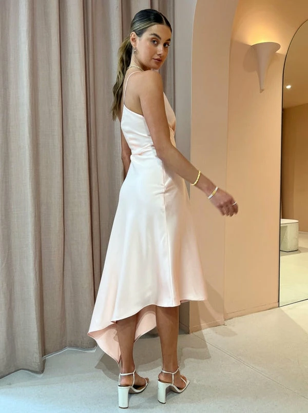 Feel endlessly glamorous at your next soirée in One Fell Swoop's Diety Dress in Cantaloupe. Crafted from a lustrous fabrication in a fruit cantaloupe colour-way, this midi dress features a one shoulder bearing asymmetric neckline that drapes across into the waistline. Falling gracefully into an asymmetrical hemline, the Diety Dress contours and accents the femme form perfect for twilight cocktails, wedding celebrations and formal soirées. DETAILS & CARE Fabric: 100% Viscose – One shoulder asymmetrical neckline – Thin rouleau strap – Folded drape detail – Cut on the bias – Invisible zip along left side seam – Fitted at the waist – Asymmetric midi length hemline – Suitable for a strapless bra – True to size Our Coco girl Eden wears a size 8 AU / small. Eden's Height is 175cm COCO STYLING TIP For life's special moments, compliment the Diety Dress with the Alias Mae Camelia Heel in Bone, the Reliquia Trending Upwards Hoops in Gold, the Porter Belcher Bolt Ring Necklace in Gold, Porter Pond Ring in Gold and the Amber Sceats Coco Bracelet in Gold