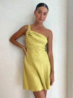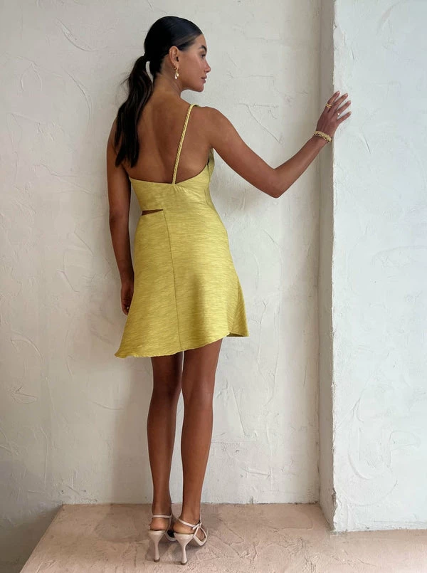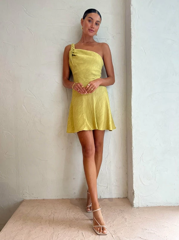 Effortlessly float through sunshine celebrations with One Fell Swoop's Hepburn Mini in Golden Straw. Crafted from a light-medium weight fabrication with a subtle shine, this mini dress is heroed for its one-shoulder neckline with a braided finish and cut-out on the right rib. Falling into a mini length with an A-line skirt that floats fluidly around the figure, the Hepburn is designed to take you from birthday celebrations and twilight cocktails to dancing the night away. DETAILS & CARE Fabric: 100% Polyester- One shoulder neckline with fixed braided strap- Fitted bodice- Cut out at right rib- Mini-length skirt- Suitable for a strapless bra- 100% Polyester- Light-medium weight fabrication with a subtle shine- Natural giveCare Instructions: Cool Gentle Hand Wash, Treat With Care, Dry Clean With Care Our Coco Girl Eden wears a Size AU 8 / SmallEden's Height is 175cm COCO STYLING TIP Finish this look with the Alias Mae Molly Heel in Cream, Amber Sceats Grande Helena Ring in Gold, Amber Sceats Diana Ring in Gold, Arms of Eve Eros Textured Ring in Gold, Amber Sceats Emma Earrings in Gold, Porter Baby Link 2.0 Bracelet in Gold, and Amber Sceats Coco Bracelet in Gold.