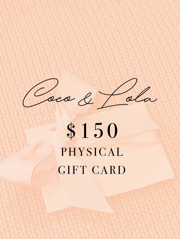 Share the magic with a Coco & Lola Physical Gift Voucher. Physical Gift Cards are delivered via postage with a personalised code for the recipient to redeem at checkout at any Coco & Lola Boutique or via our e-Boutique. If you would prefer an immediate gift, Coco & Lola E-Gift cards are the perfect last minute option as they are sent immediately to your chosen email address. To purchase an e-gift card please click here. Each gift card comes thoughtfully gift wrapped by Coco. Additional Physical Gift Voucher values available: $50, $100, $200, $250, $300, $400, $500 Terms & Conditions: Gift cards are Not refundable Please treat this card as cash as lost cards can not be re-issued.Valid for 3 years.
