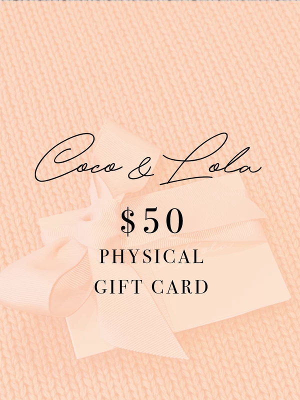 Share the magic with a Coco & Lola Physical Gift Voucher. Physical Gift Cards are delivered via postage with a personalised code for the recipient to redeem at checkout at any Coco & Lola Boutique or via our e-Boutique. If you would prefer an immediate gift, Coco & Lola E-Gift cards are the perfect last minute option as they are sent immediately to your chosen email address. To purchase an e-gift card please click here. Each gift card comes thoughtfully gift wrapped by Coco. Additional Physical Gift Voucher values available: $100, $200, $300, $400, $500 Terms & Conditions: Gift cards are Not refundable Please treat this card as cash as lost cards can not be re-issued.Valid for 3 years.