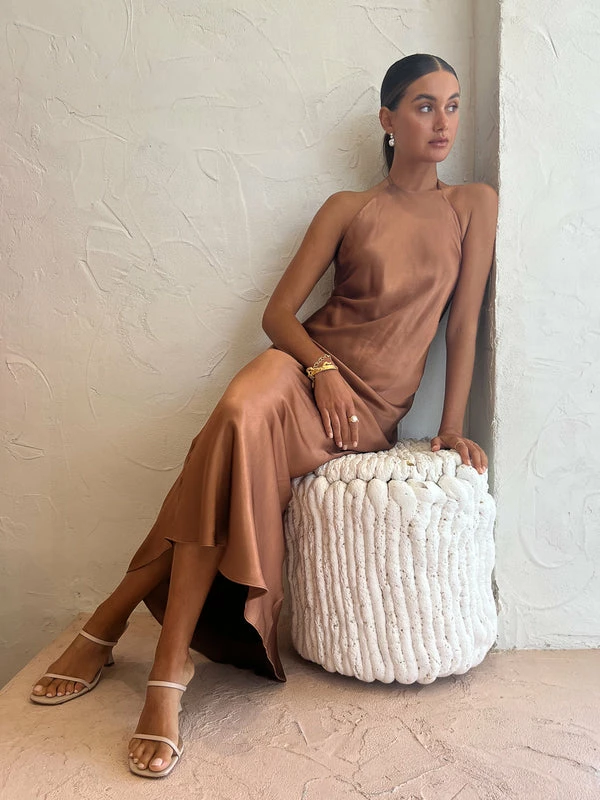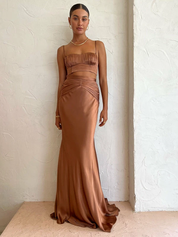 Invest in timeless styling versatility with Shona Joy's Ruched Maxi Skirt in Almond. Delicately crafted from a silk-to-touch luxurious sheen, this high-waisted maxi-length skirt features a ruched waistline and an invisible back zip. Coveted by Coco for its endless styling versatility, this maxi skirt will be your go-to for wedding festivities, birthday soirees and romantic date nights. DETAILS & CARE Fabric: Main: 58% Lenzing™ Ecovero™ 42% Viscose Lining: Polyester- Maxi skirt- Silk-to-touch fabric- Luxurious sheen- High waistband- Ruched detailing at the waist- Invisible back zip- Maxi-length skirt- Medium weight, non-stretch- LinedCare Instructions: Cold hand wash separatelyOur Coco girl Eden wears a size AU 8 / small.Eden’s height is 175cm. COCO STYLING TIP Complete the look with the Alias Mae Molly Heel in Cream, , Porter Chunky Belcher Bracelet in gold, Amber Sceats Diana Ring in Gold, Arms of Eve Rae Chain Necklace in Gold, Amber Sceats Lane Ring in Gold, Amber Sceats Bella Earrings in Gold, and the Amber Sceats Helena Bracelet in Gold.