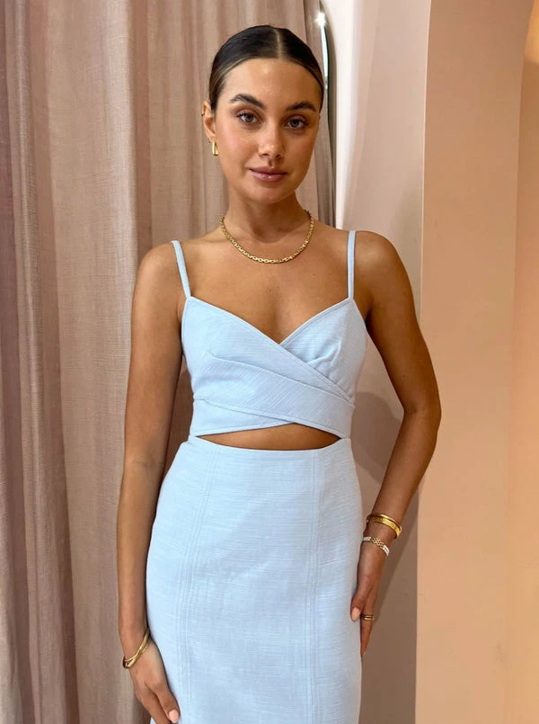 Redefine your summer celebration silhouettes with Significant Other's coveted Frankie Dress in Cornflower. Crafted from 100% Cotton, this midi dress features a fitted bodice with a sweetheart neckline and a cut-out centre front detail balanced with a fit and flare hemline.The perfect plus one to life's special occasions, this midi dress is the perfect pairing for your next cocktail party, wedding celebrations and birthday soirees. DETAILS & CARE Fabric: Main 100% Cotton- Midi dress- Sweetheart neckline- Cut out detail- Structured fabrication- Back split- Centre back clasp- Invisible back zip- Bodice & Short skirt linedOur Coco girl Eden wears a size AU 8 / small.Eden’s height is 175 cm. COCO STYLING TIP For your next special occasion, style with the Camilla and Marc Vigo Heel in Ivory, Arms of Eve Rae Chain Necklace in Gold, Arms of Eve Farrah Link Earrings in Gold, Porter Pond Bangle in Gold, Amber Sceats Hunter Bracelet in Gold, Reliquia Thalia Ring in Pearl/Gold, Porter Wave Ring Set in Gold, Porter Pond Ring in Gold and the Arms of Eve Helios Cuff Bracelet in Gold.