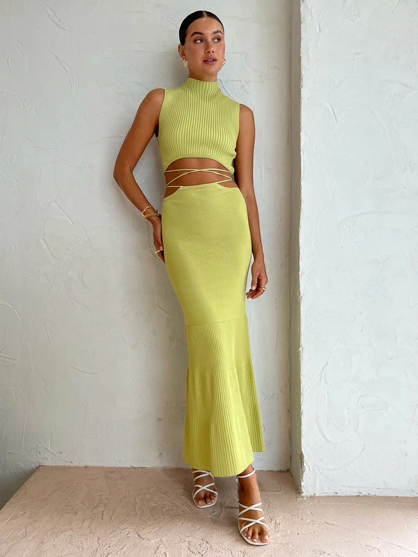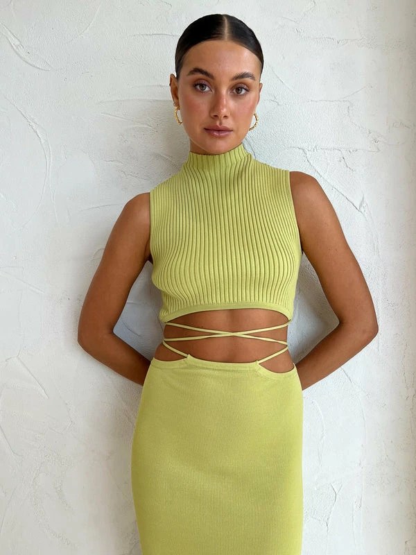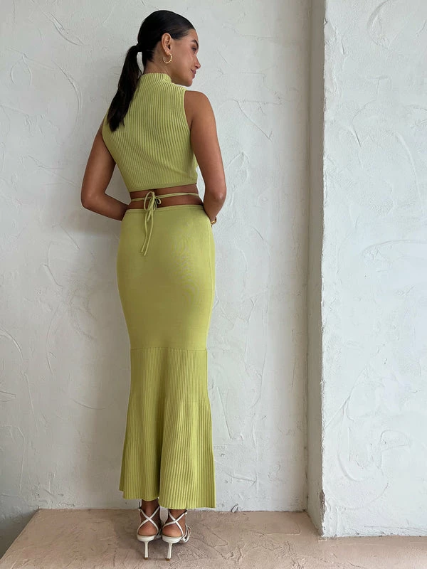 Float straight off the beach with Significant Other's Skye Skirt in Avocado. Crafted from a luxe ribbed knit fabrication, this midi skirt features a cut-out detail at the waist with an adjustable tie and is designed to be fitted at the waist before falling relaxed towards the hem. A classic midi skirt silhouette with a twist, pair it with a white tee for an elevated look or with the matching Skye skirt for a resort-ready ensemble. DETAILS & CARE Fabric: 50% Viscose, 50% Nylon- Midi skirt- High waist fit- Cut out detail- Adjustable tiesOur Coco girl Eden wears a size AU 8 / small.Eden's height is 175cm. COCO STYLING TIP Finish the look with the LMS The Violet in White, Amber Sceats Bella Earring in Gold, Amber Sceats Lane Ring in Gold, Amber Sceats Electra Ring Set in Gold, Porter Pond Ring in Gold, Amber Sceats Helena Bracelet in Gold, and the Porter Chunky Belcher Bracelet in Gold.