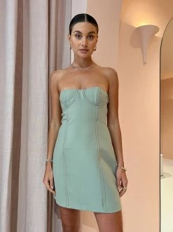 SIR.’s Adrien Structured Mini Dress in Sage has us falling for sleek silhouettes with minimalistic charm. Thoughtfully crafted from a soft to touch Italian Suiting fabrication, this strapless mini dress sits fitted against the body. Featuring internal boning for a panelled structure fit and underwire bra cups. Invigorating with its seasonal sage colour-way contrast stitching, the Adrien will add a refreshing silhouette to your twilight cocktail, birthday celebration and long lunch Coco closets. DETAILS & CARE Fabric: Main: 53% Polyester 43% Virgin Wool 4% Lycra Lining: 100% Polyester – Mini dress - Internal boning- Underwire bra cups- Invisible zipper at side- Contrast topstitching throughout- Fully lined- A mid weight soft Italian suiting fabric that drapes on the body- No stretch - Designed to be fitted on the body Care Instructions: Dry clean only. Our Coco girl Eden wears a size 8 AU / small. Eden's height is 175cm. COCO STYLING TIP Complete this mini moment with Mara & Mine Delfine Heel in Black, Reliquia Lucille Earrings in Gold, Arms Of Eve Addison Necklace in Gold/Silver, Porter Frill Cuff in Gold, Porter Heritage Bracelet in Gold, Porter Wave Croissant Ring in Gold and Porter Pond Ring in Gold.