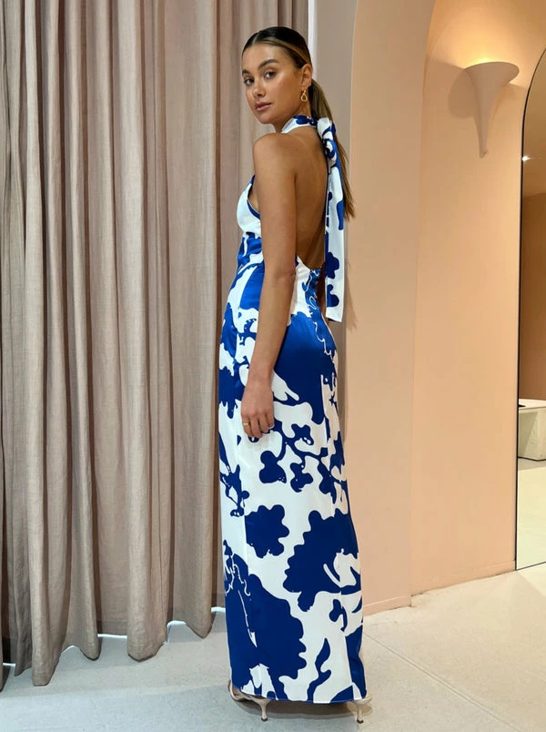 The Esme Halter Dress in Merce Abstract Print from SIR. is a modern statement maker for your occasion closet. Cut from 100% Silk, this halter maxi dress is cut on the bias to effortlessly flatter and features an open back, tie detailing at neck and centre front hem split. With the bold and bright florals of the abstract print, this lightweight maxi dress is the perfect pairing for any special occasion in your calendar, from Wedding festivities through to formal occasions. DETAILS & CARE Fabric: Main 100% Silk Lining: 100% Polyester – Bias cut – Halter that ties at back – Centre front high split, finishes mid thigh – Invisible side seam zipper – Exclusive SIR. print – Relaxed fit – Unlined – A breathable lightweight silk with a satin finish – No stretch – True to size Please note: Print placements vary on each garment for individuality. Care Instructions: Dry clean only. Our Coco girl Eden wears a size 1 / AU 8 / small.Eden’s height is 175cm. COCO STYLING TIP Complete this glamorous look with the Alias Mae Baz Heels in Cream, Porter Pond Earrings in Gold, Porter Pond Ring in Gold, Porter Pond Bangle in Gold, Porter Wave Ring Set in Gold and the Porter Chunky Belcher Bracelet in Gold.