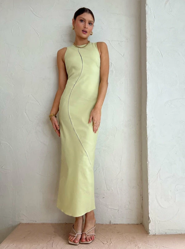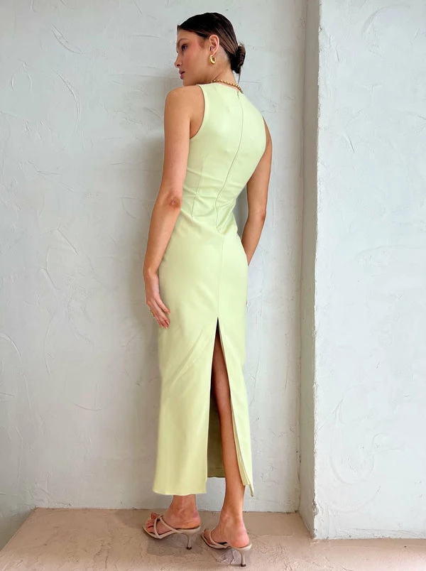 Invigorate your wardrobe with contemporary dressing with the SIR. Esther Midi Dress in Pistachio. Crafted from a mid-weight Italian suiting fabrication, this form fitting and sleeveless midi dress features a high rounded neckline and is finished with a statement curved panel with delicate lace detailing.Coveted for the timelessly classic silhouette, Coco Girls are styling this midi dress for their birthday celebrations, lunches in the sun and wedding festivities. DETAILS & CARE Fabric: Main 50% Cotton, 44% Polyamide, 6% Elastane Lining: 100% Polyester- High rounded neck- Embroidery detail- Midi length- Invisible zipper at centre back- Fully lined- A midweight soft Italian suiting fabric that drapes on the body- Moderate stretch through the body, designed to skim the body- True to sizeCare Instructions: Dry clean only.Our Coco girl Ella wears a size AU 8 / small.Ella’s height is 176cm. COCO STYLING TIP For special occasion styling, complete the look with the Alias Mae Baz Heels in Cream, Porter Chunky Belcher Necklace 2.0 in Gold, Reliquia Trending Upwards Hoops in Gold, Porter Baby Link Bracelet in Gold, Porter Triple Heirloom Ring in Gold, Porter Heirloom Bangle 6mm in Gold, Amber Sceats Hunter Bracelet in Gold, Porter Harp Ring in Gold and the Porter Pond Ring in Gold.