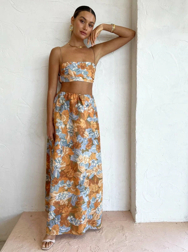 Glide effortlessly through your Spring Summer occasions with the TOJHÀ Dahlia Skirt in Desert Floral. Lightweight and breathable, this Linen Cotton Maxi sits high on the waist and falls softly to the ground. Featuring adjustable elastic straps with toggles, its gentle asymmetric gathers are adjustable to highlight the femme silhouette. Enriched with shades of Spring and Summer, the Dahlia Skirt is a timeless investment for work to weekend styling. DETAILS & CARE Fabric: 55% Linen 45% Cotton – Maxi length – Thin elastic straps with functional toggle closure – Asymmetric gathering through adjustable toggles Our Coco girl Eden wears a size AU 8 / small.Eden’s height is 175cm. COCO STYLING TIP Complete the look with the TOJHA Pip Top in Desert Floral, Alias Mae Molly Heels in Cream, Porter Wave Ring Set in Gold, Reliquia Sevilla Earrings in Gold, Porter Heirloom Bangle 6mm in Gold, Porter Harp Ring in Gold, Porter Frill Cuff in Gold, Amber Sceats Coco Bracelet in Gold, Brie Leon Mini Chloe Bag in Natural Stone and the Vieux Chartreaux Sunglasses in Bone.